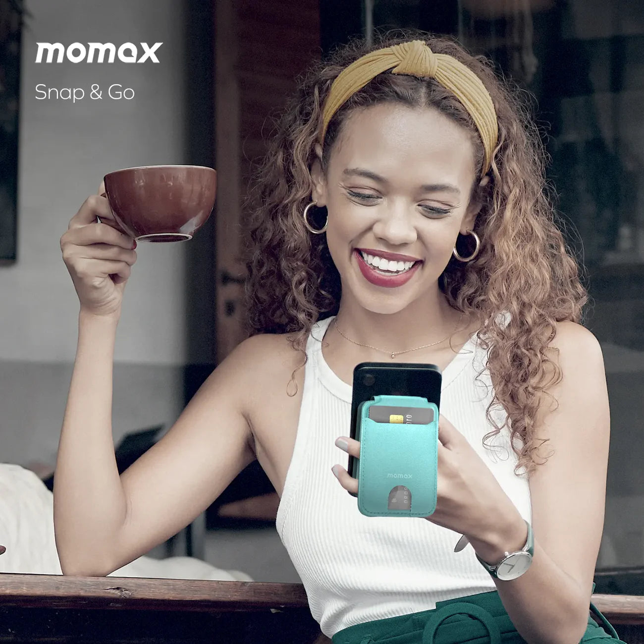 Momax 1-Wallet Magnetic Card Holder with Adjustable Stand - Black